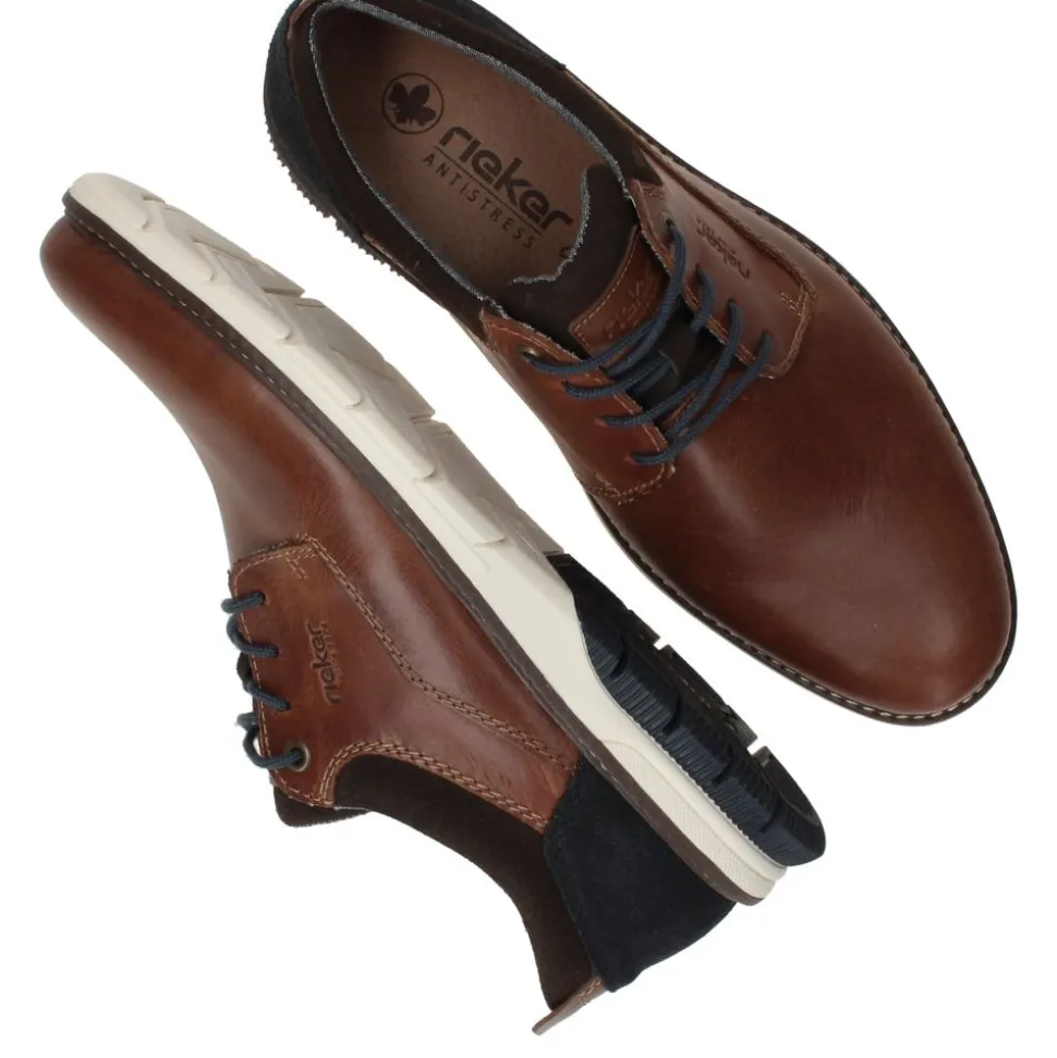 - De veterschoenen zijn gemaakt van een combinatie van leer en kunstsuède.