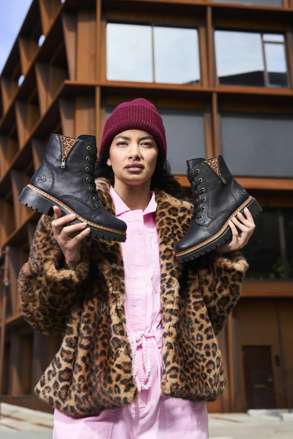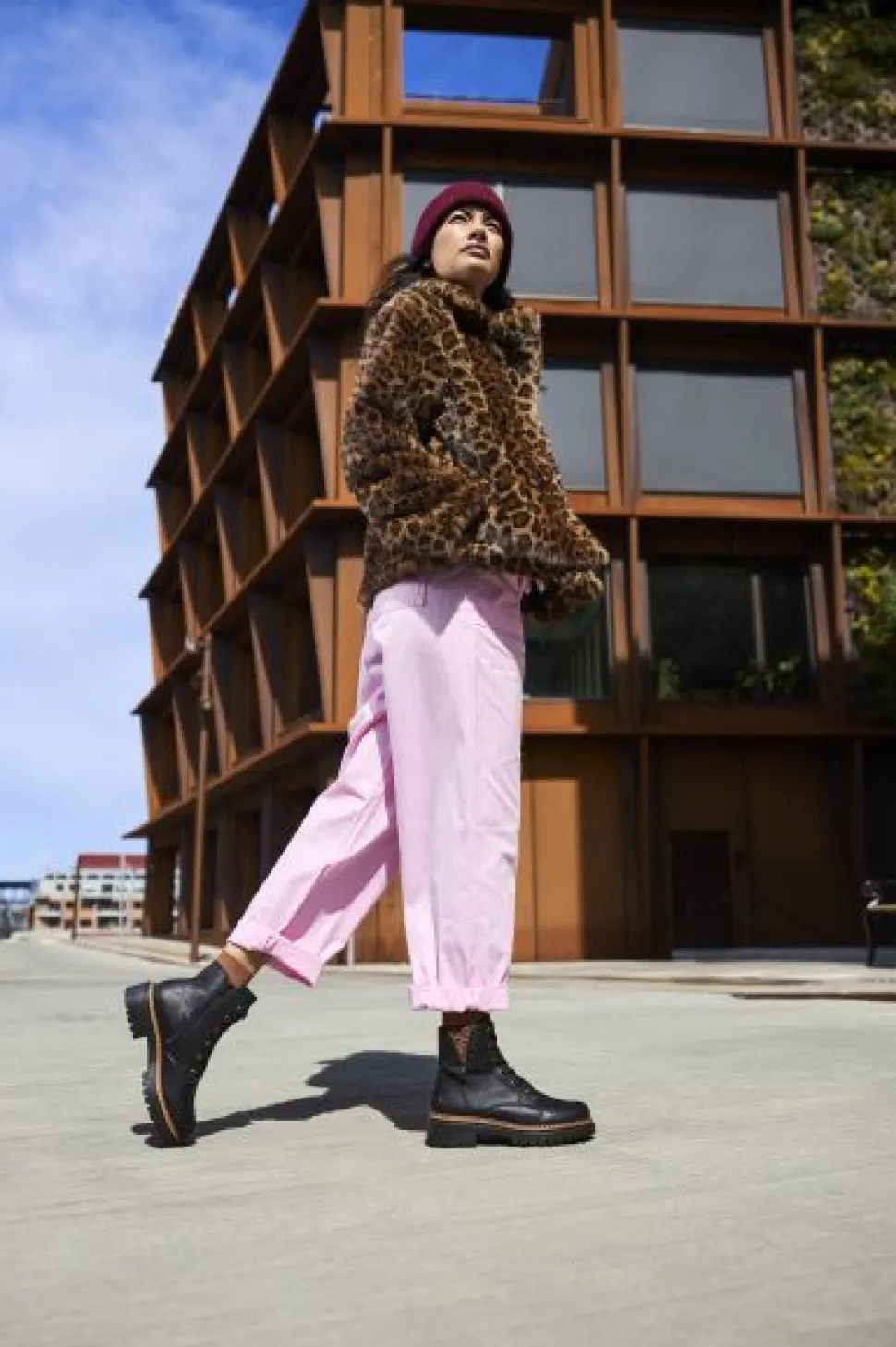 Deze stoere van zijn perfect voor dames die graag comfortabel en trendy voor de dag komen. De zwarte kleur past moeiteloos bij elke outfit en het leopard accent geeft de schoen nét dat beetje extra. Dankzij de stevige zool en warme voering kun je er urenlang op lopen zonder in te leveren op stijl. Deze boots zijn geschikt voor dames met voetbreedte F.
