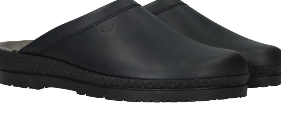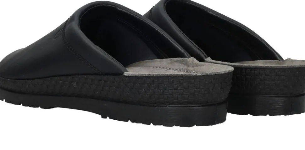 - De pantoffel is geheel gemaakt van leer.