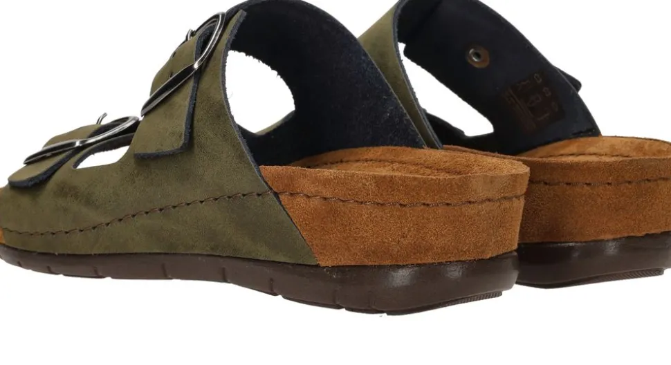 - De slipper is gemaakt van leer en heeft een voorgevormd voetbed.