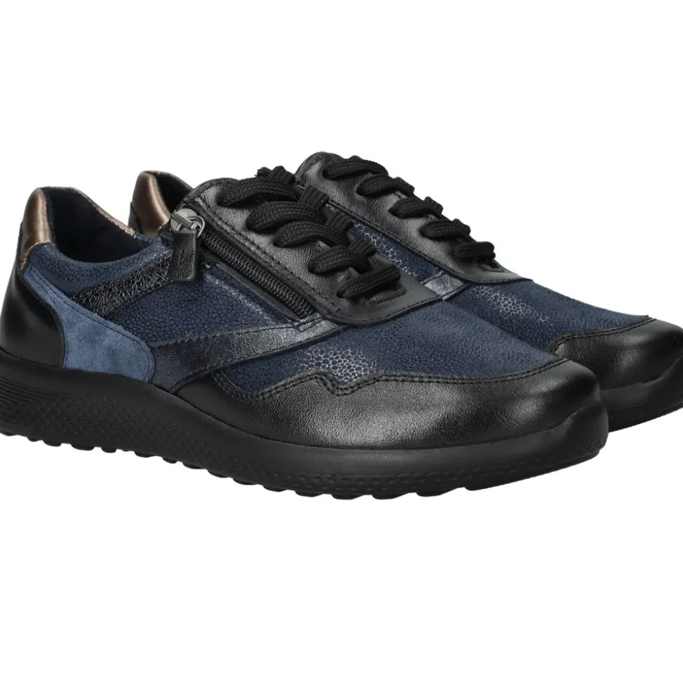 Deze blauwe van combineert comfort en elegantie op unieke wijze. Dankzij de extra brede K-wijdte biedt deze schoen volop ruimte voor de voeten. Het bovenwerk van leer en stretchtextiel sluit zacht aan en beweegt mee met elke stap. Ideaal voor wie op zoek is naar een soepele pasvorm en een uitneembaar voetbed voor eigen zooltjes.