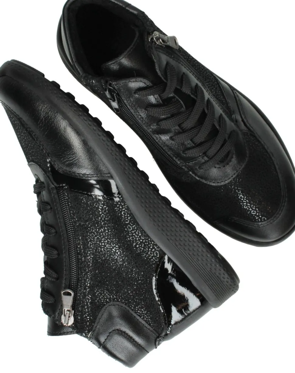 Deze stijlvolle Sens veterboot voor dames combineert comfort met een moderne uitstraling. Het bovenwerk is vervaardigd uit een combinatie van leer en textiel, wat zorgt voor zowel duurzaamheid als flexibiliteit. De zachte textiele voering biedt een aangenaam draagcomfort, ideaal voor dagelijks gebruik. Dankzij de praktische veter- en ritssluiting is de schoen eenvoudig aan en uit te trekken.