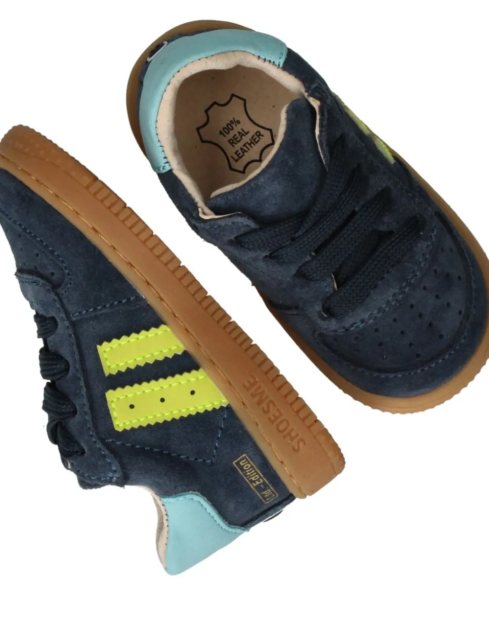 Stoer, stevig en supercomfortabel: deze veterschoenen zijn perfect voor jongens die volop de wereld willen ontdekken. Het donkerblauwe suède met felgele strepen en lichtblauwe hielkap geeft de een frisse, sportieve look. De zachte leren voering zorgt voor een fijne pasvorm en ademend comfort. Deze schoenen zijn geschikt voor voetbreedte G en bieden goede ondersteuning voor jonge kindervoeten in de groei.