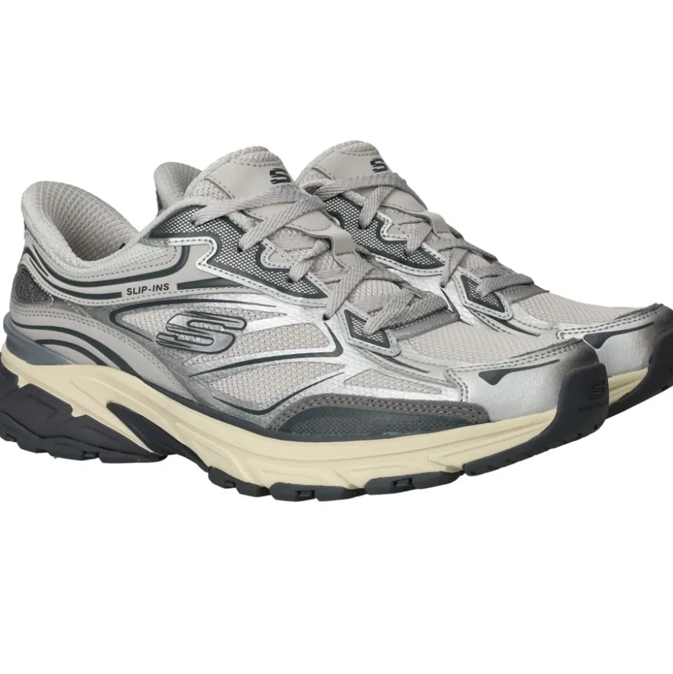 Deze zilverkleurige van is een sportieve topper met een moderne uitstraling. Dankzij de handige Slip-Ins constructie stap je er zó in, zonder te bukken. De combinatie van luchtig mesh en synthetisch materiaal maakt deze schoen perfect voor actieve dagen of casual outfits.