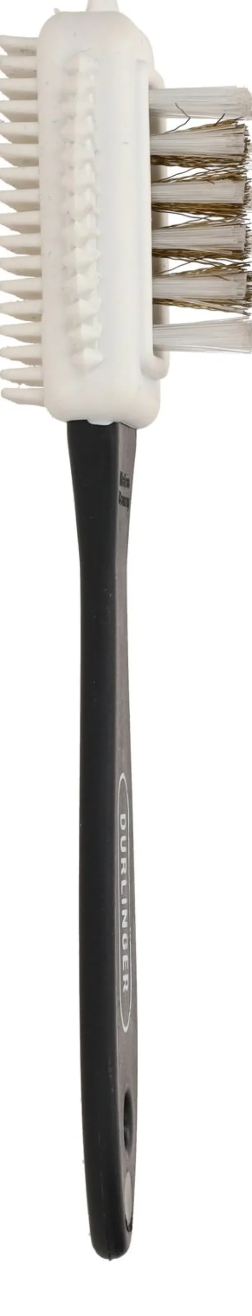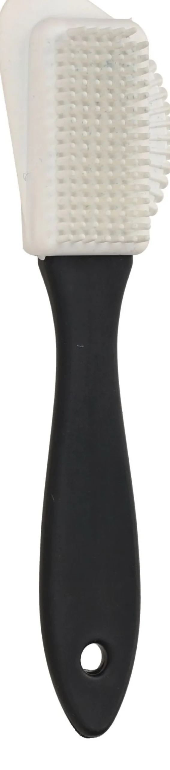 Gebruiksaanwijzing: gebruik de zachte rubberen kant om vuil te verwijderen op suède en om suède weer op te borstelen. Gebruik de (hardere) stalen kant om vuil op nubuck te verwijderen en nubuck op te borstelen. Strijk hierbij altijd in dezelfde richting en ga voorzichtig te werk! Zijn er plekjes lastig te bereiken met het verwijderen van vuil, zoals bijvoorbeeld een zoolrand? Gebruik dan de zijkant of bovenkant van de borstel.