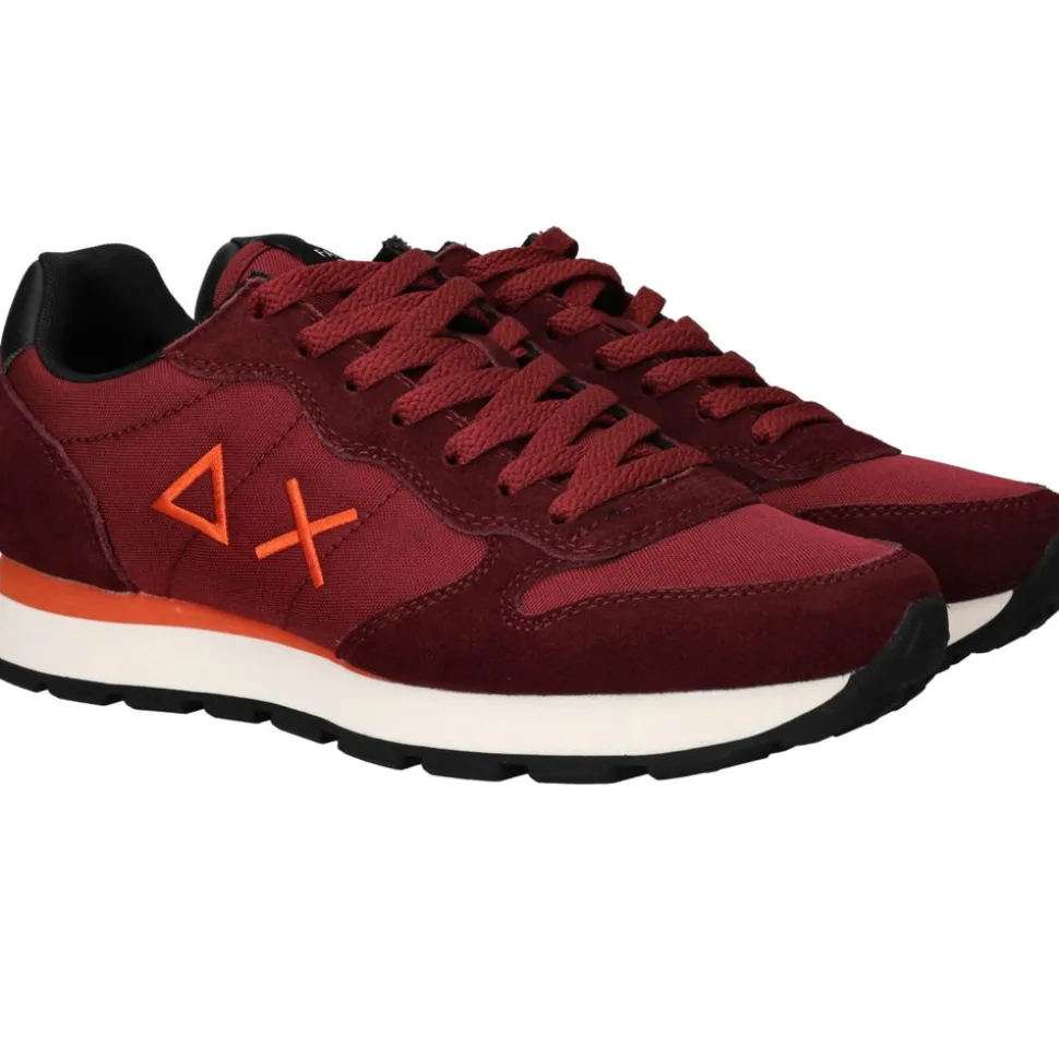 De Tom Solid sneakers zijn een opvallende en sportieve keuze voor heren. Het bovenwerk van rood textiel en kunstleer zorgt voor een dynamische uitstraling, terwijl de oranje details en logo’s een frisse, moderne twist geven. Dankzij de zachte textielen voering en de lichte zool bieden deze de hele dag comfort, of je nu onderweg bent of gewoon casual gekleed gaat.