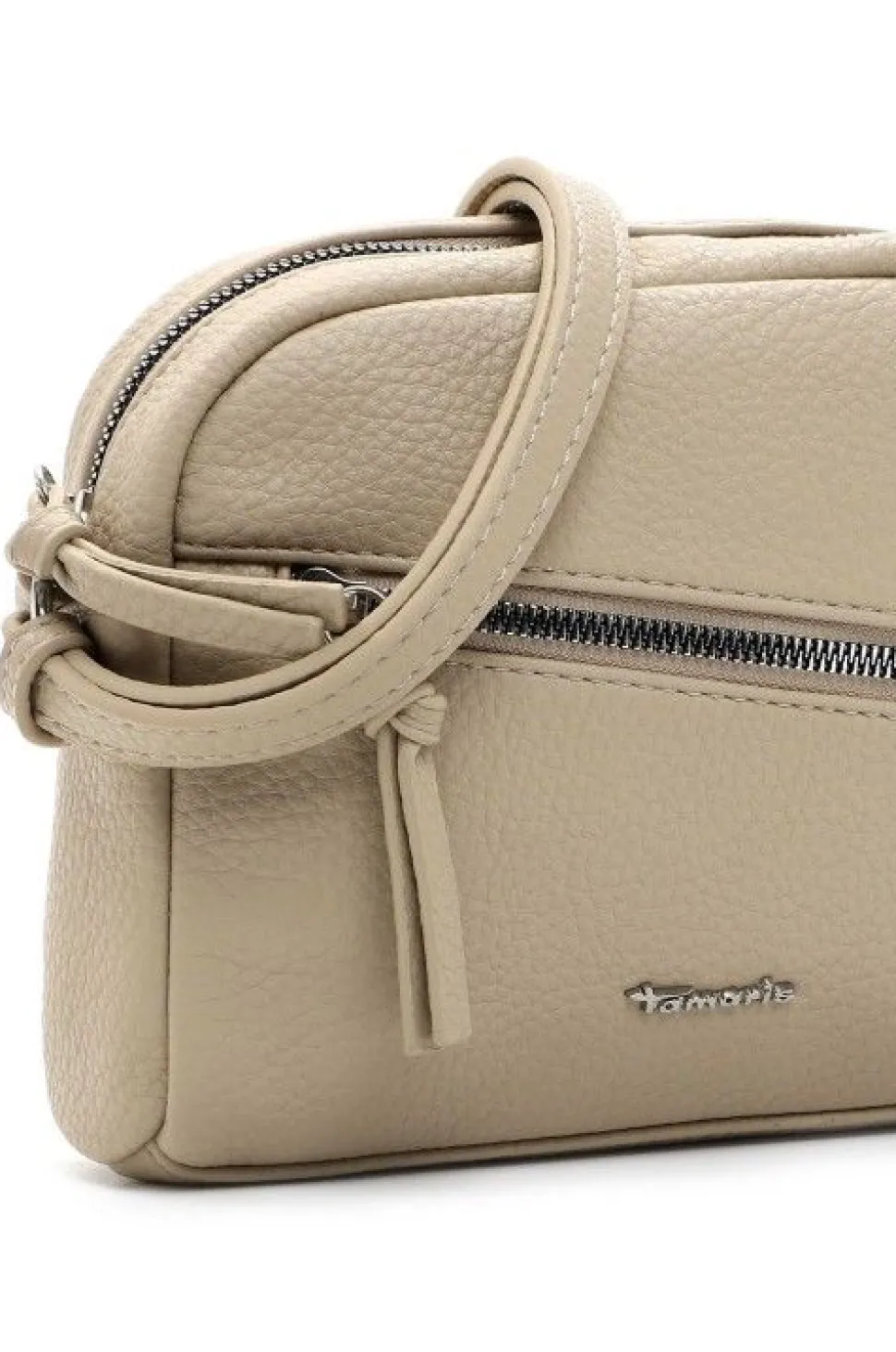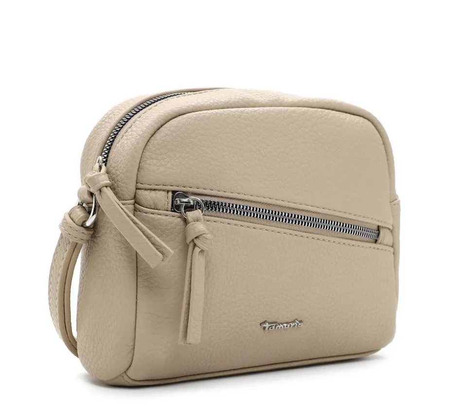 De Tamaris Alessia is een compacte, maar stijlvolle schoudertas voor elke gelegenheid. Deze beige uitvoering straalt rust en elegantie uit, perfect voor een minimalistische look. De tas is gemaakt van stevig synthetisch materiaal met een fijne structuur en is afgewerkt met een speelse diagonale rits aan de voorzijde. Een must-have accessoire voor wie houdt van eenvoud met een twist.