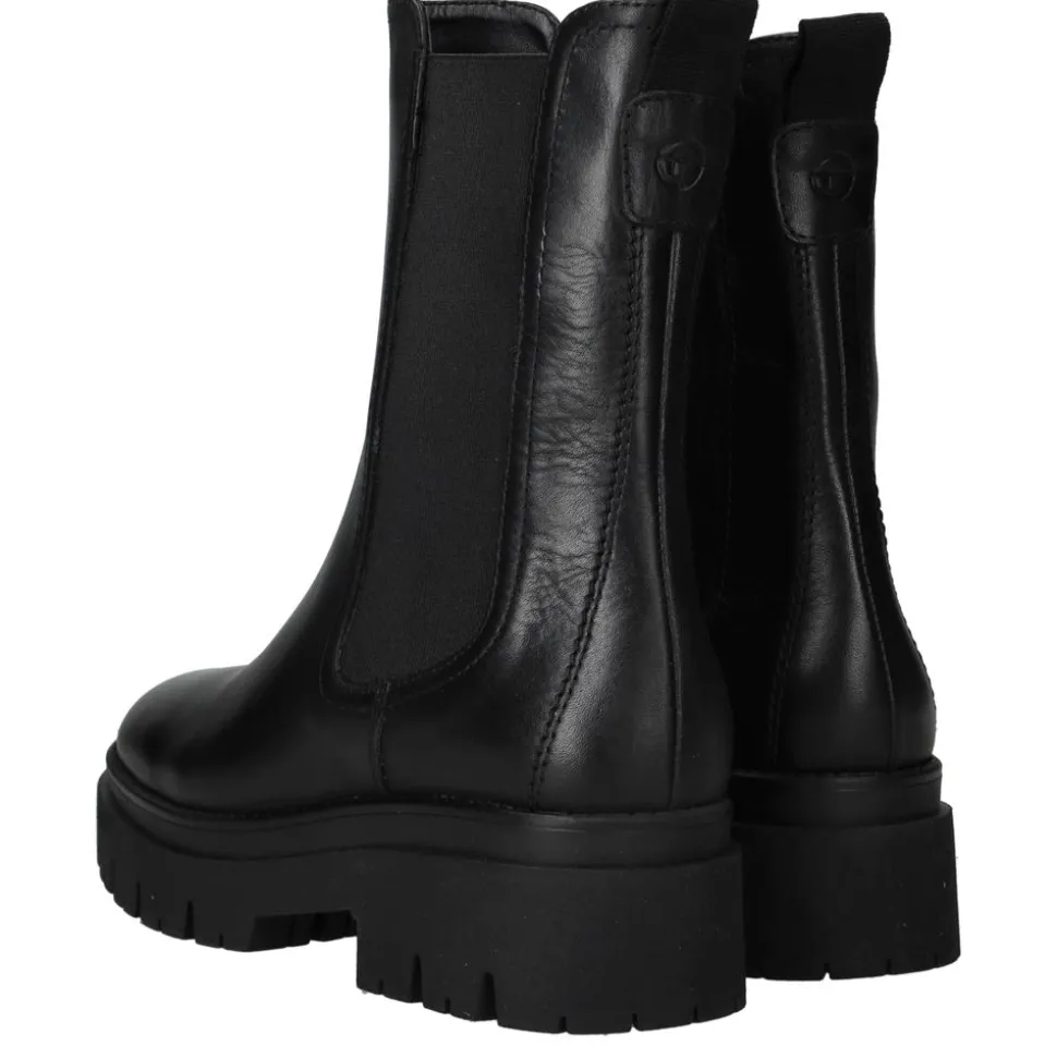 Deze Tamaris chelsea boot is uitgevoerd in zwart glad leer en biedt een moderne en toch klassieke look. Perfect te combineren met zowel casual als geklede outfits.