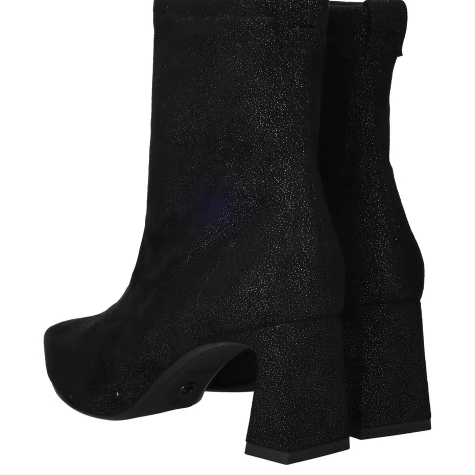 Deze zwarte combineert verfijnde elegantie met een moderne uitstraling. De flexibele schacht zorgt voor een aansluitende pasvorm, terwijl de subtiele glitter in het kunstsuède zorgt voor een chique en feestelijke look. Perfect om zowel casual als bij een avondoutfit te dragen.