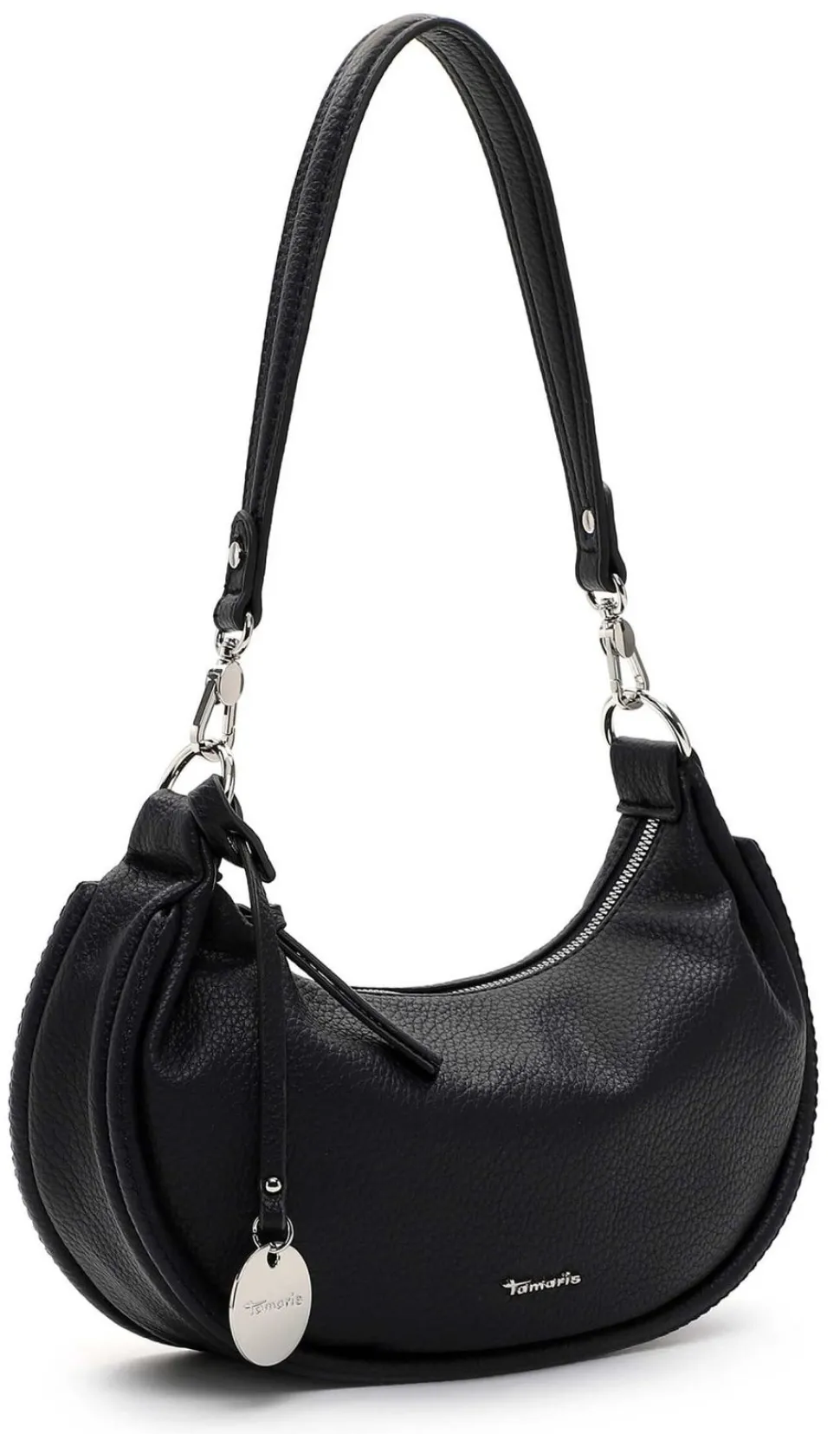 Ga voor klassiek en krachtig met deze elegante hobo bag uit de tassencollectie van Tamaris. Het model Felicitas is vervaardigd uit soepel kunstleer en uitgevoerd in een diepe zwarte kleur, waardoor deze tas een tijdloze aanvulling is op je garderobe.