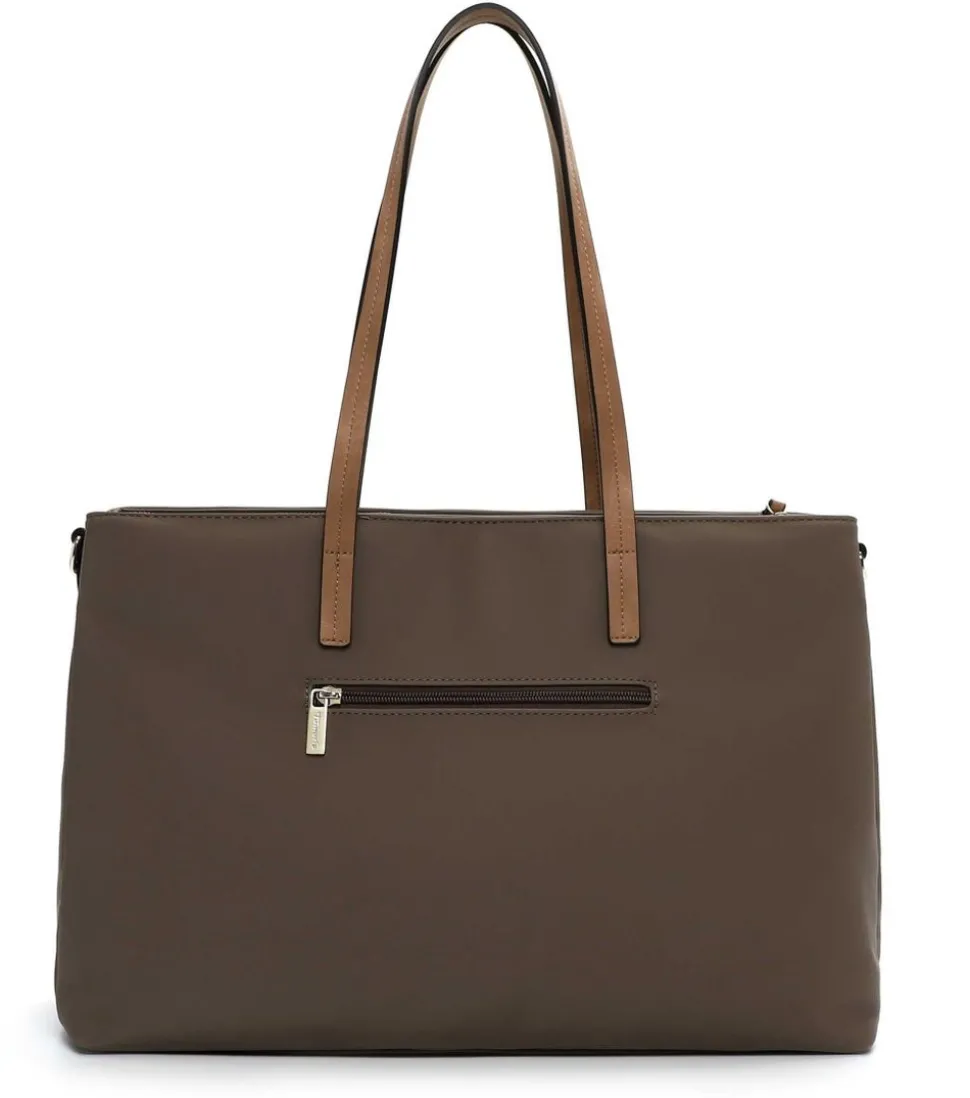 De is een elegante keuze voor dagelijks gebruik. De tas is uitgevoerd in een chique taupe kleur en gemaakt van hoogwaardig kunstleer. Dankzij de slimme indeling met drie compartimenten – waarvan het middelste vak met rits sluit en de buitenste met een magneet – blijven je spullen goed georganiseerd en veilig opgeborgen.