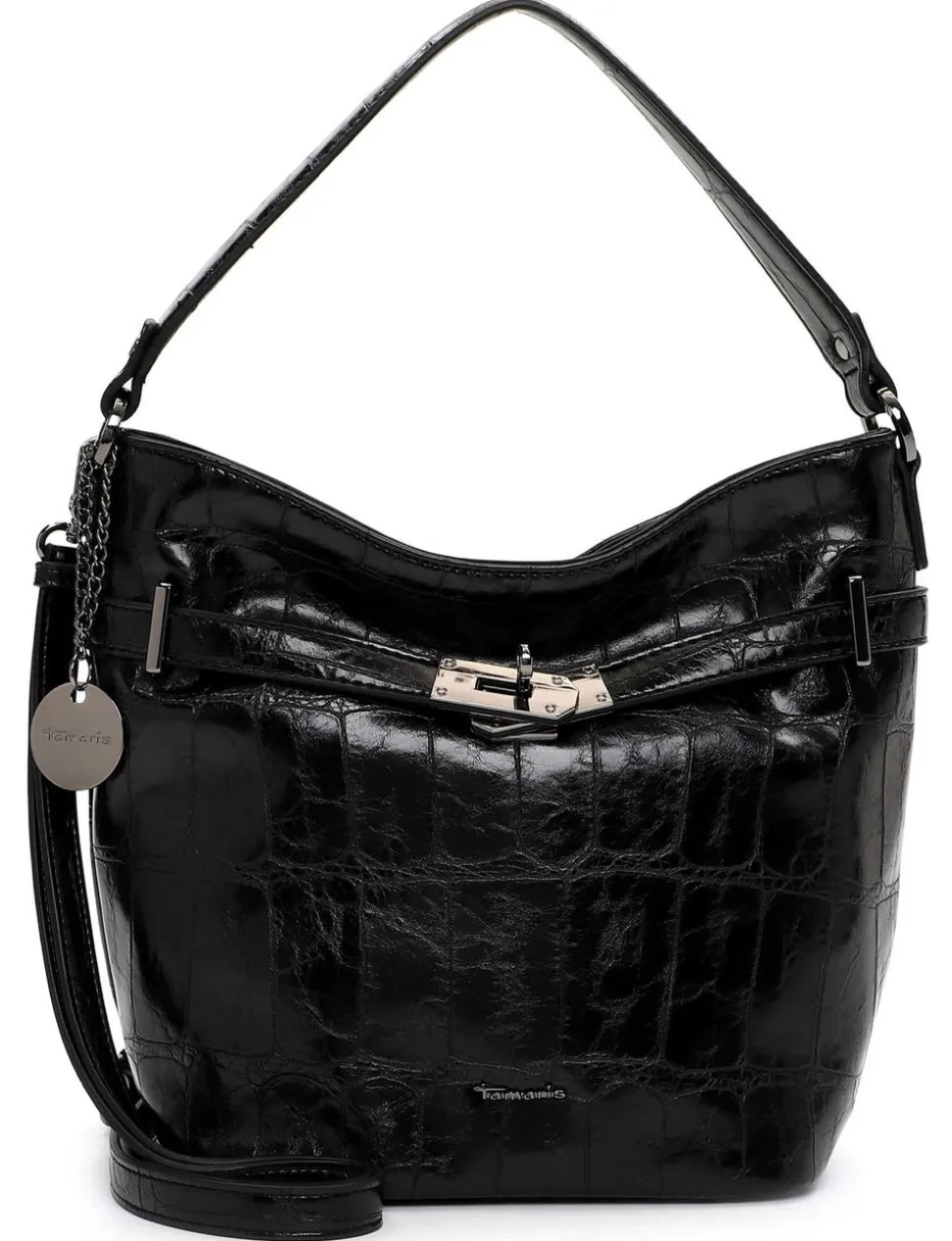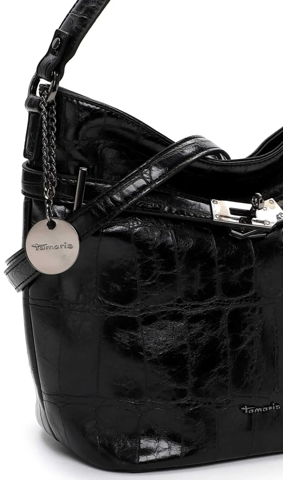 De Tamaris Gulia schoudertas in het zwart is een elegante en veelzijdige tas die perfect past bij iedere outfit. Gemaakt van hoogwaardig kunstleer met een subtiel glanzende crocoprint, straalt deze tas klasse en stijl uit. Dankzij het ruime hoofdvak met kleinere afsluitbare vakjes kun je jouw spullen overzichtelijk en veilig opbergen. De tas is voorzien van zowel een handvat als een verstelbaar schouderhengsel, waardoor je hem op verschillende manieren kunt dragen.