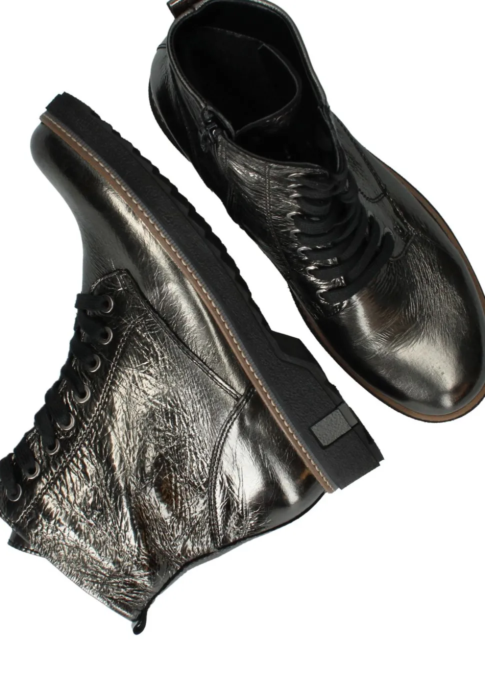 - Je stapt makkelijk in de schoen door de veter- en ritssluiting.