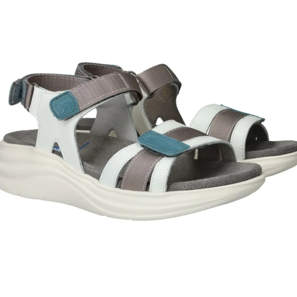 Deze comfortabele sandaal van Wolky is ideaal voor wie graag actief en modieus de zomer doorkomt. Het model is uitgevoerd in wit leer met grijze en blauwe accenten, wat zorgt voor een sportieve en frisse uitstraling. De dikke, lichtgewicht zool biedt uitstekende demping en ondersteuning, waardoor je moeiteloos lange dagen op pad kunt. Perfect voor wandelingen, citytrips of gewoon dagelijks comfort!