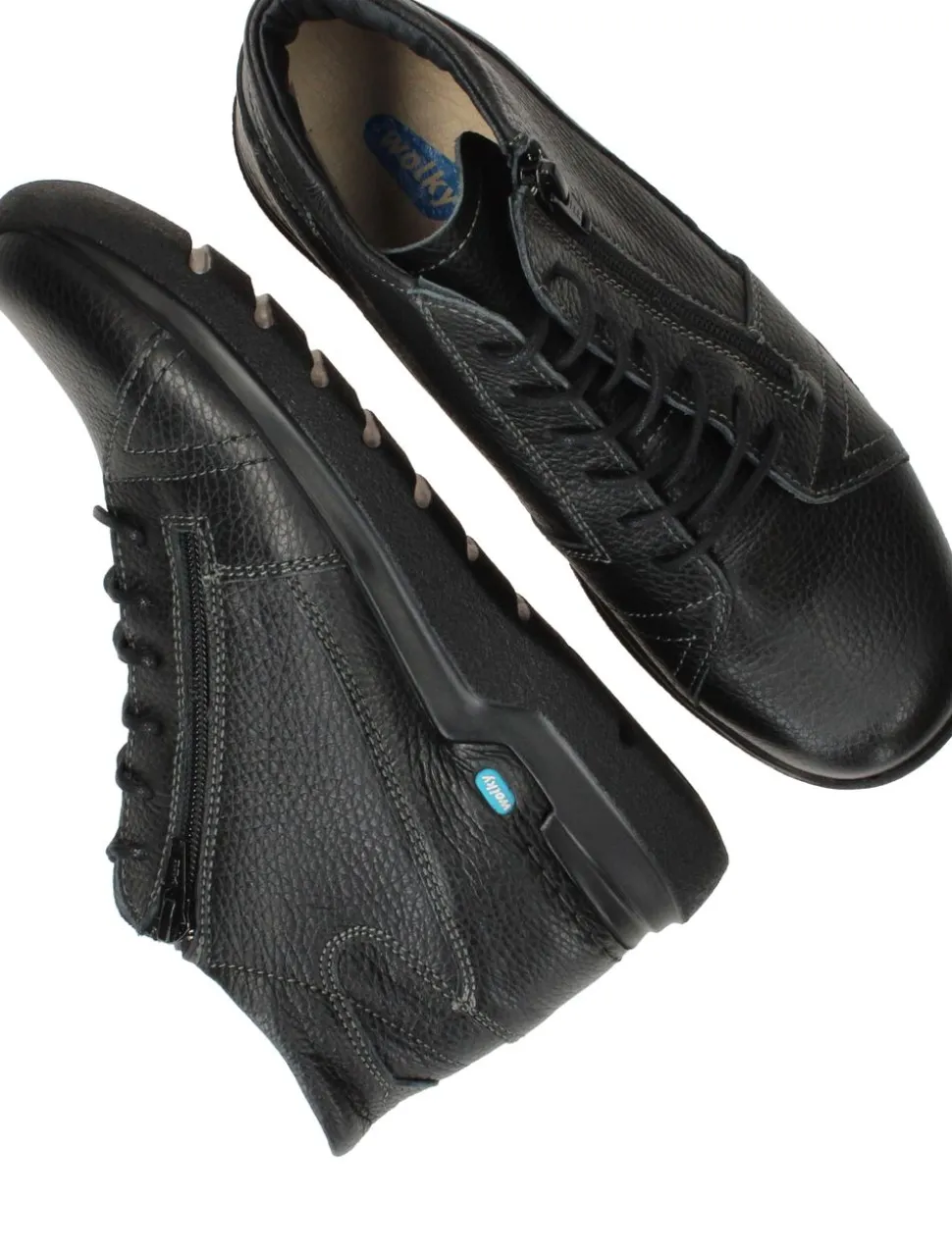 - Je stapt makkelijk im de schoen door de veter- en ritssluiting.