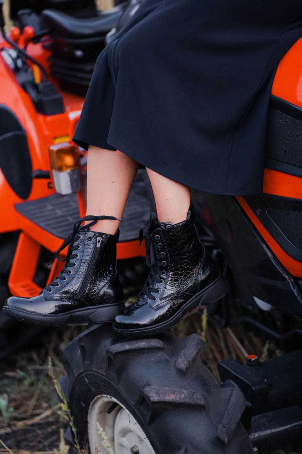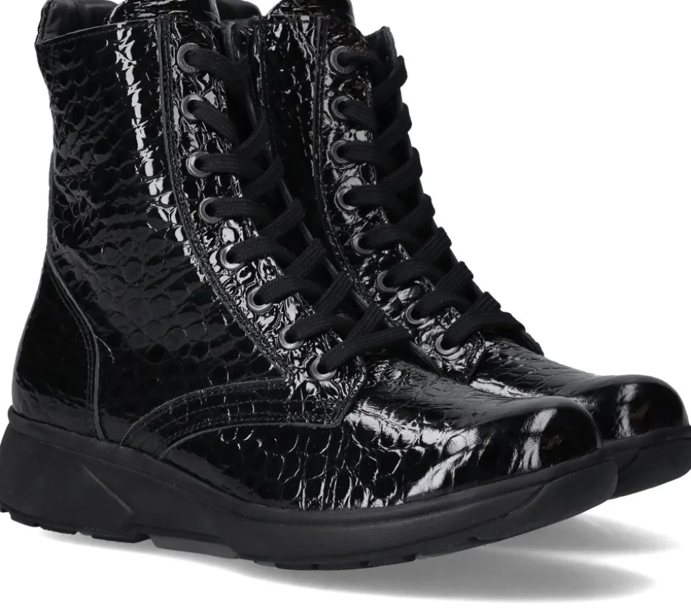 De Xsensible Albi is een elegante hoge dameslaars met een opvallende zwarte lakfinish in crocostructuur. Deze laars combineert een modieuze uitstraling met het ongeëvenaarde comfort van de Stretchwalker-technologie. Perfect voor wie graag stijlvol én stabiel door het leven wandelt.