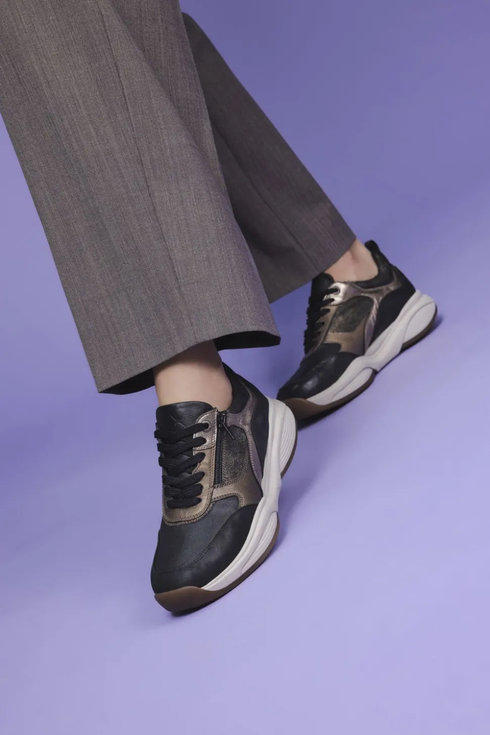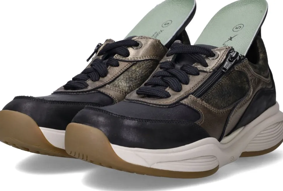 De Xsensible SWX19 is een sportieve én elegante sneaker voor dames die graag stijl combineren met comfort. De rijke mix van zwart met bronskleurig metallic leer geeft de schoen een moderne, luxueuze uitstraling. Dankzij de kenmerkende Stretchwalker-zool loop je soepeler dan ooit – elke dag opnieuw.